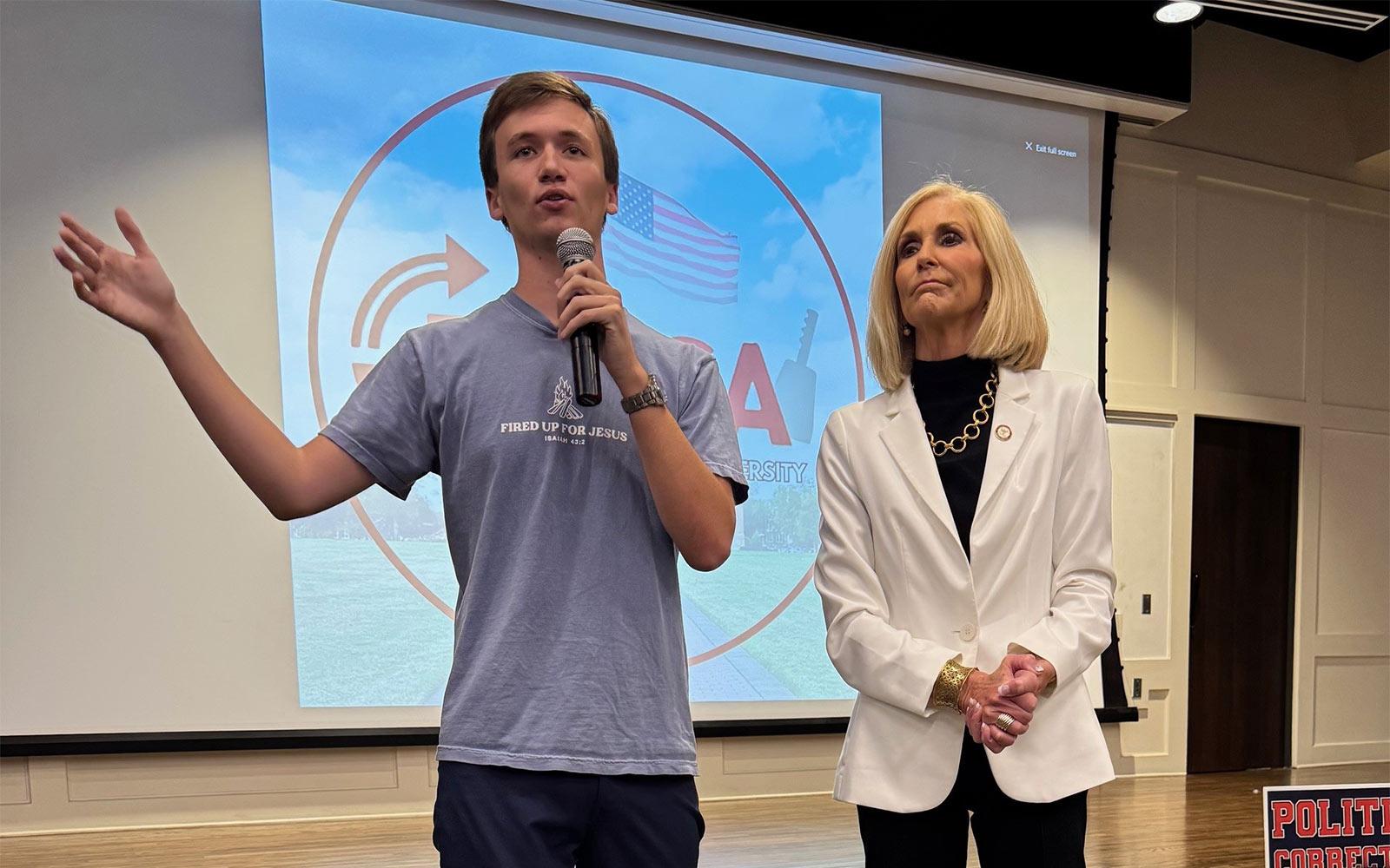 Mississippi Attorney General Lynn Fitch, right, joined former co-chair of the Republican National Committee's Youth Advisory Council Brilyn Hollyhand. Hollyhand is a political science major at Auburn University. Hollyhand appeared at MSU under the auspices of the student-led Turning Point USA chapter and is currently on a tour of universities in the South.