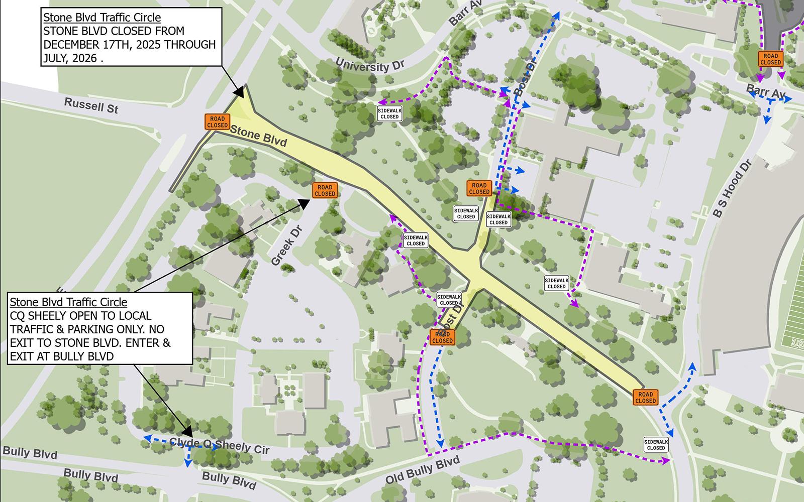 Stone Blvd. closing for traffic circle construction