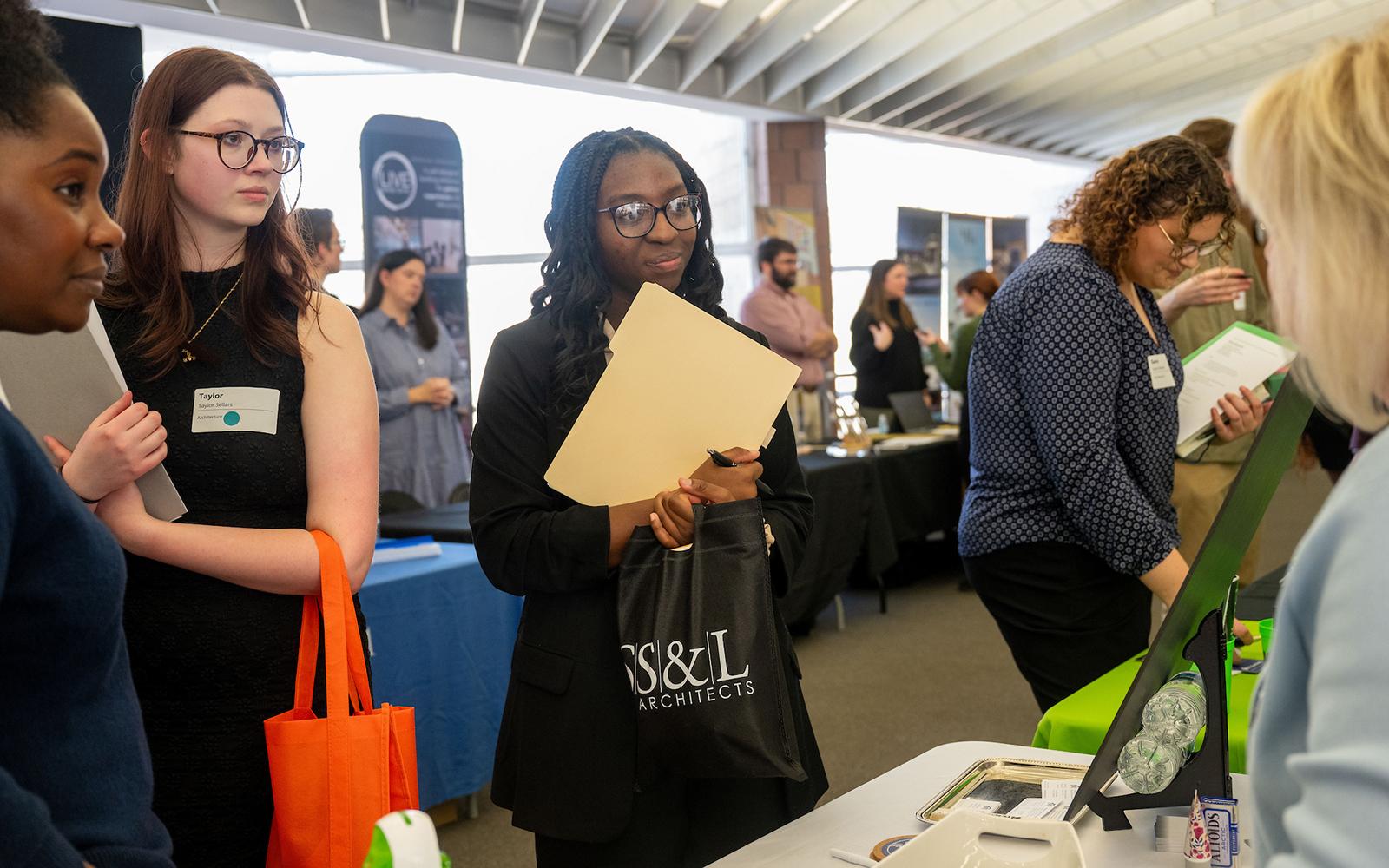 Students and employers gather at the 2025 Mississippi State College of Architecture, Art and Design Career Fair. (Photo by Emily Grace McCall)